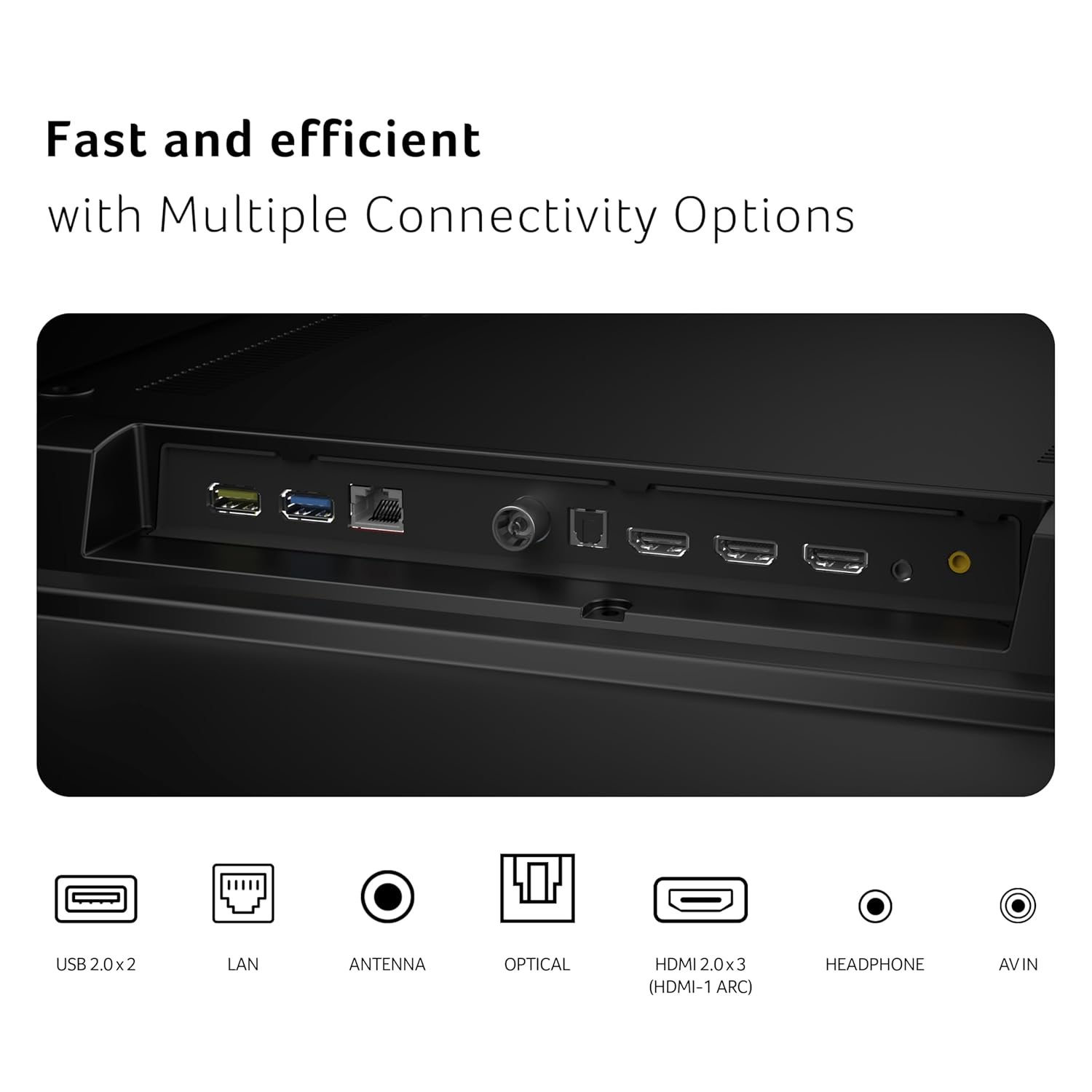 - Smart TV Features: Google TV | Android 14 OS |Content Recommendations | Casting option- Chromecast, Fastcast, Meeting mode | 2GB RAM | 16GB Storage | Watchlist | Personal Profile | Kids Profile | Google Assistant | Built-in Chromecast | Voice enabled Smart Remote | Hotkeys for Quick Access - Netflix, Prime Video, YouTube, Disney+Hotstar | Quad Core Processor | Screen Saver | ECO mode | Video calling- Google Meeting and TrueConference | Gamepad | Energy Rating: 2 Star | Annual Energy Consumption: 211 kWh