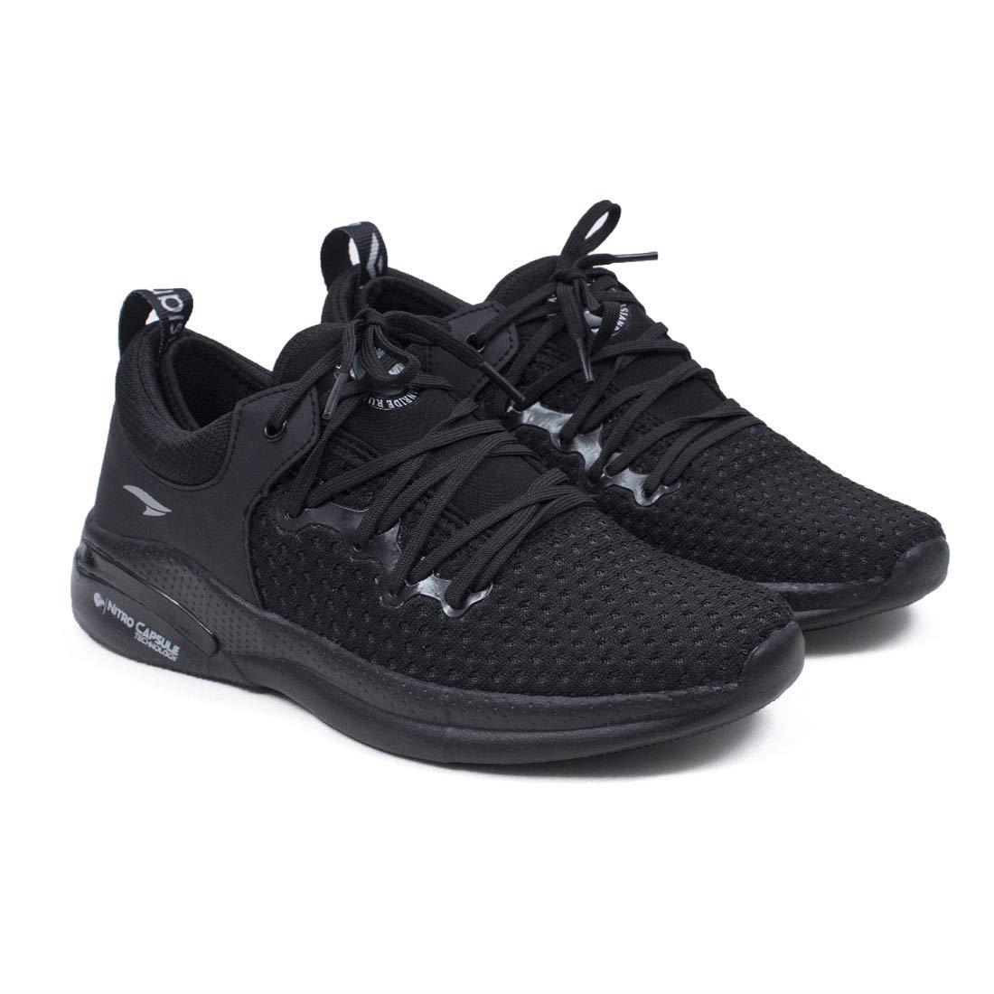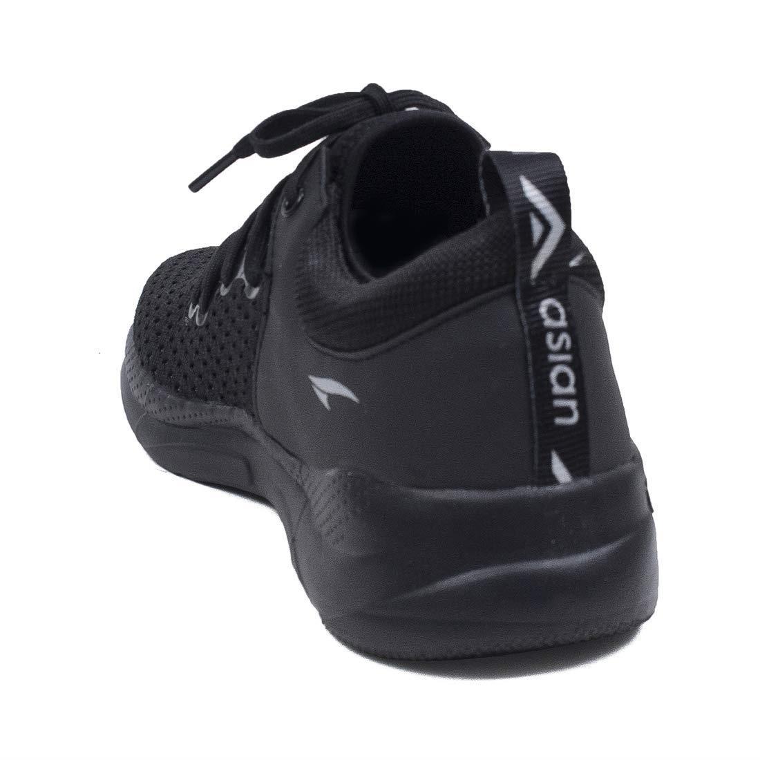 Asian Brand Men's Creta-12 Laced Sports Shoes (F.Black) & ASIAN Men's Casual Walking Lightweight Design Chappal (Combo Pack Of 2)