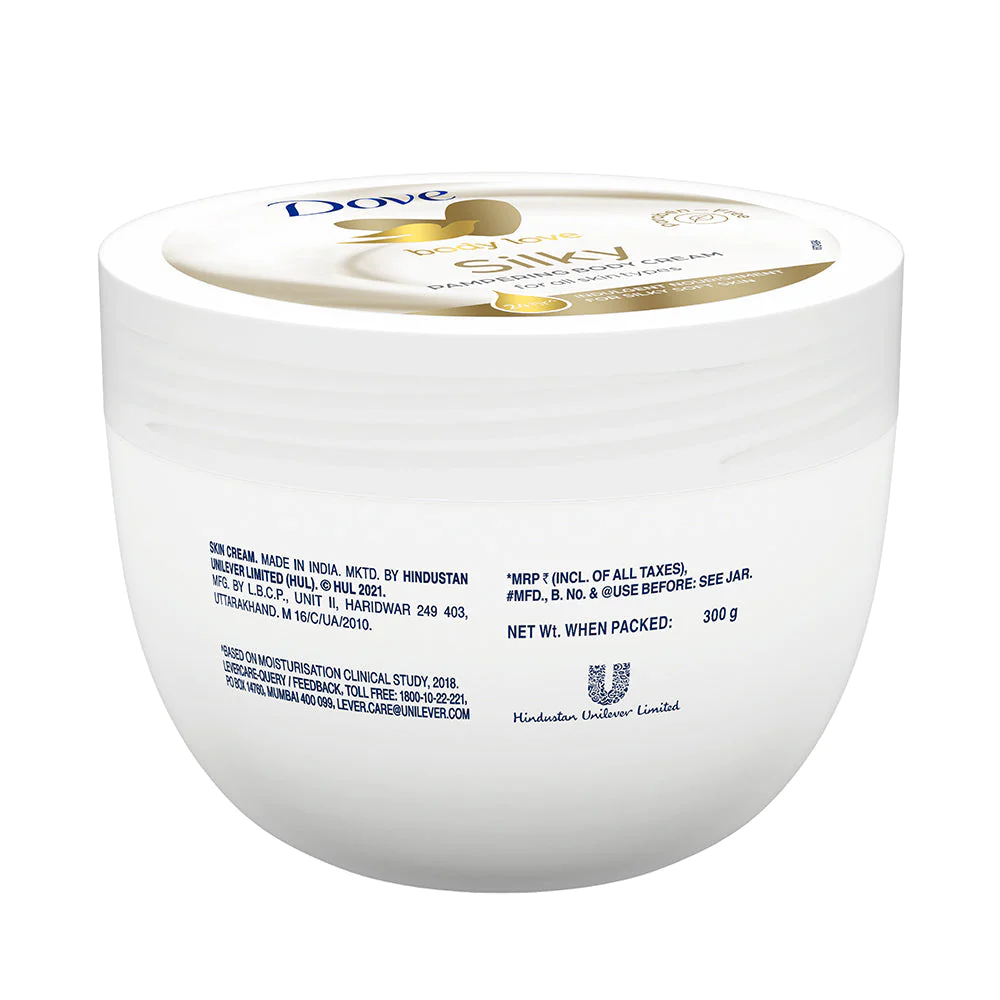 - Dove Loves Your Body Unconditionally. Dove knows that dry skin can be tricky and it’s not always easy to keep your skin feeling and looking its best. But there’s no need to give up. Presenting Dove Body love Silky . The Silky Indulgent Crema with Its unique Nutri duo , Paraben Free Formula goes beyond the surface 10 layers** deep to nourish your skin from Within. Result ? Indulgent Nourishment for Silky Soft & Glowing Skin