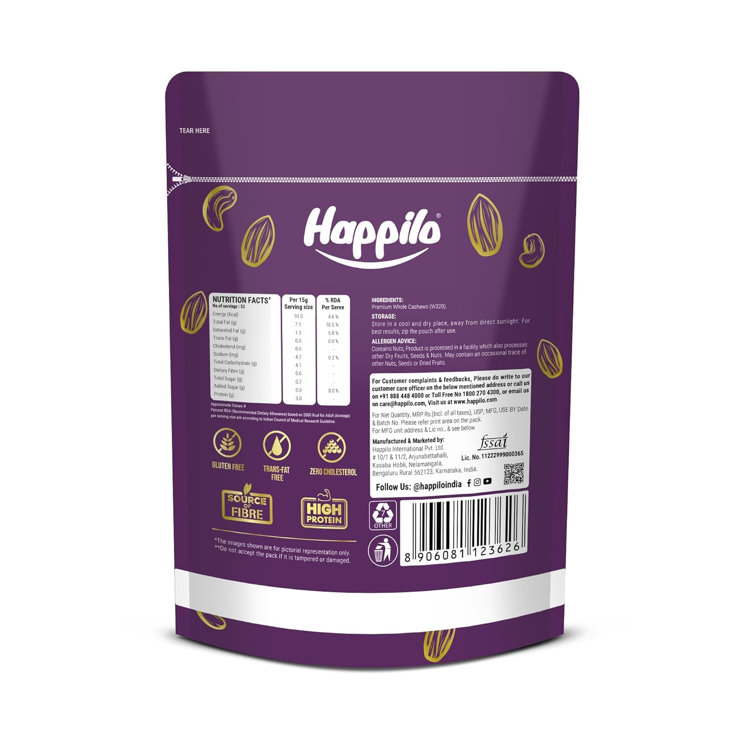 - Happilo Zip Lock Pouch with airtight seal to ensure the product is protected and fresh. Quality assured - Happilo products are rigorously tested against the industry's best quality standards