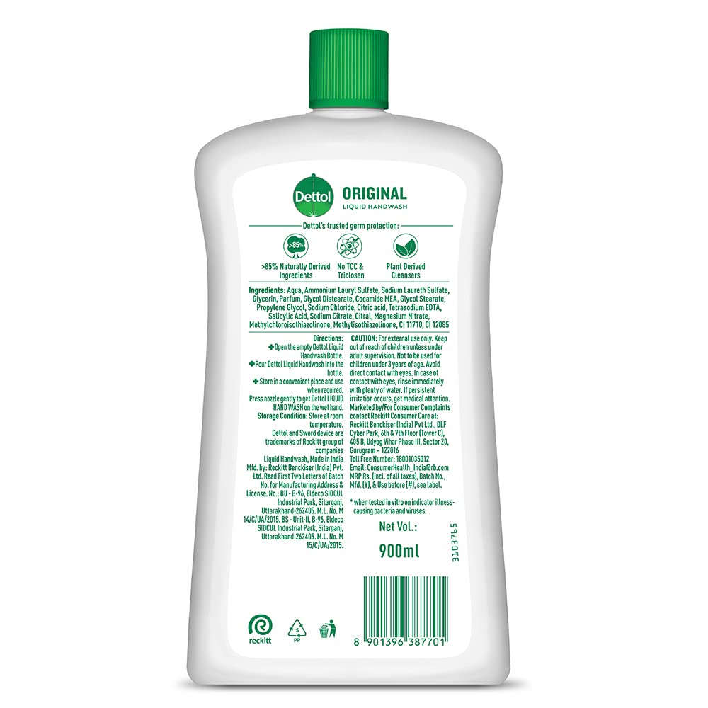 - BrandDettolItem Weight1010 GramsItem dimensions L x W x H27.9 x 10.2 x 25.7 CentimetersScentOriginalAge Range (Description)AdultSkin TypeNormalItem Package Quantity1Product BenefitsMoisturizing, CleansingItem FormLiquidMaterial FeatureNatural