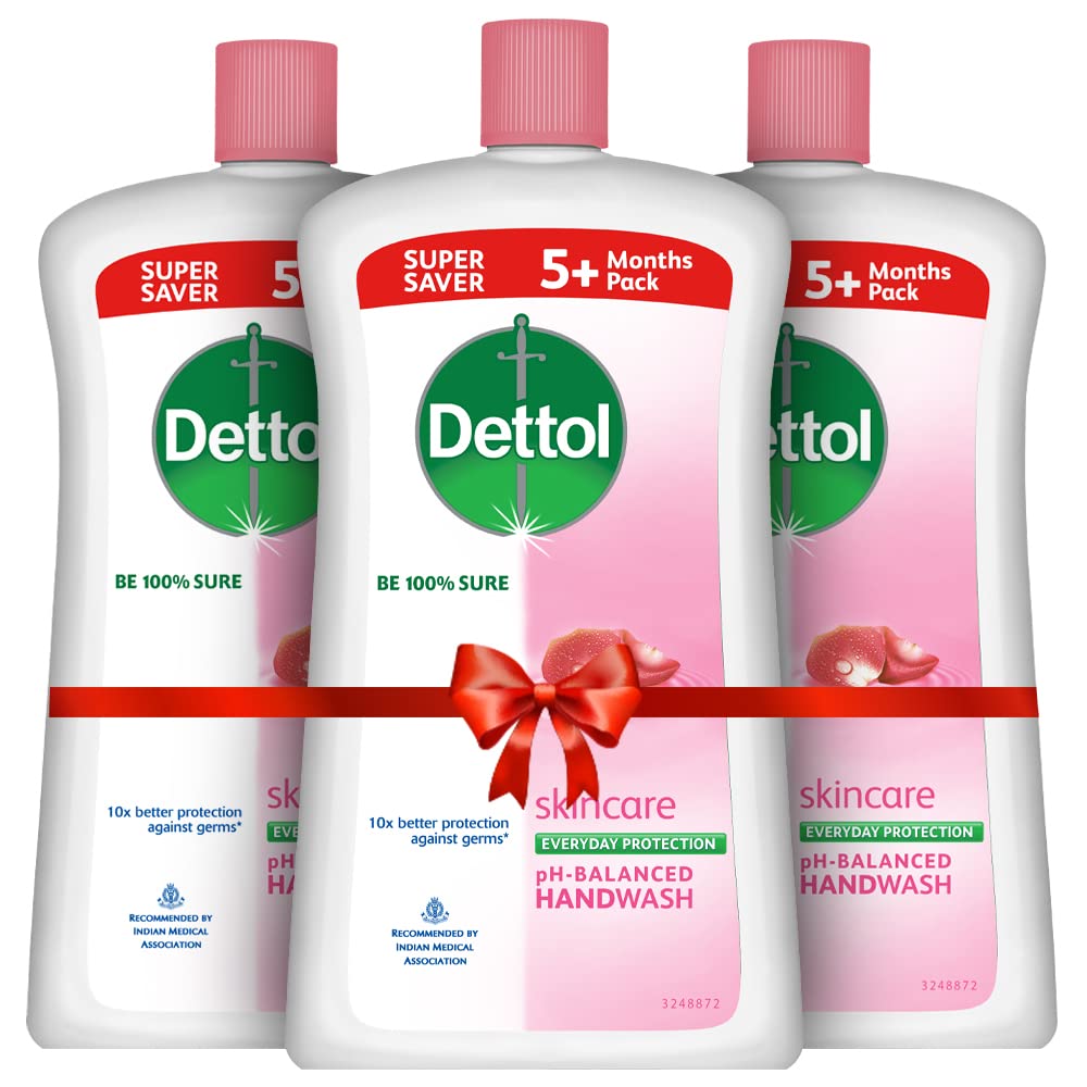 Dettol Liquid Handwash Bottle - Skincare Hand Wash- 900ml (Pack of 3) | pH Balanced | 10x Better Germ Protection