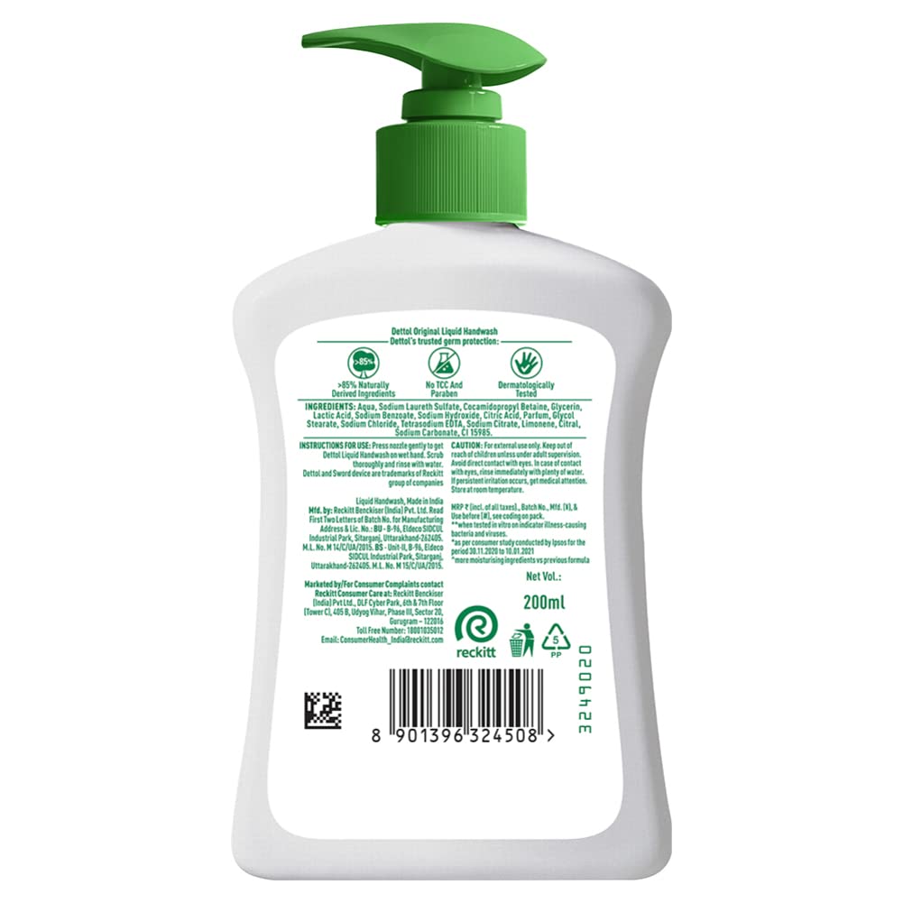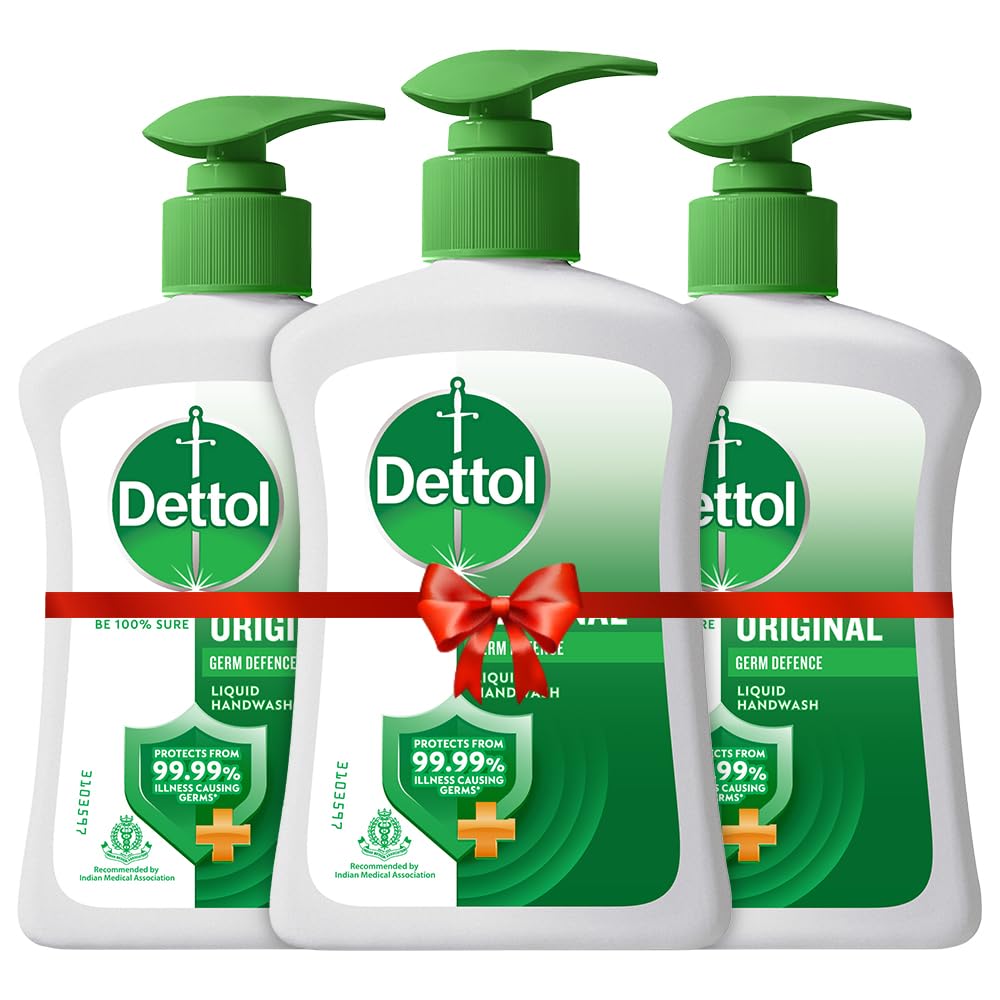 Dettol Liquid Handwash Dispenser Bottle Pump (Pack of 3 - 200ml each)- Original Hand Wash | Germ Defence Formula | 10x Better Germ Protection