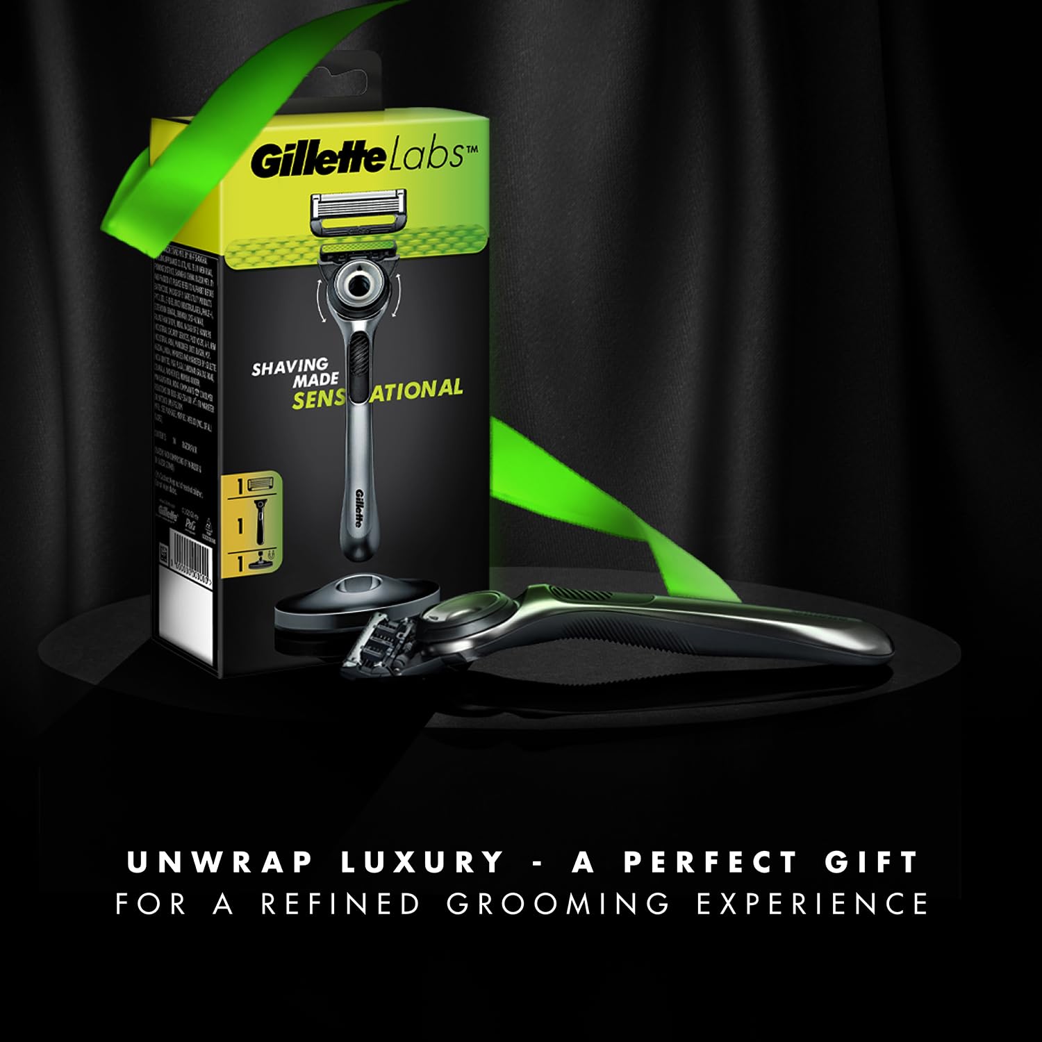 Gillette Labs Shaving Razor for Men, with 2D Flexdisc Technology, Magnetic Stand, Exfoliating Bar, Metallic Handle, 5 anti-friction blades,Precision trimmer,Waterproof