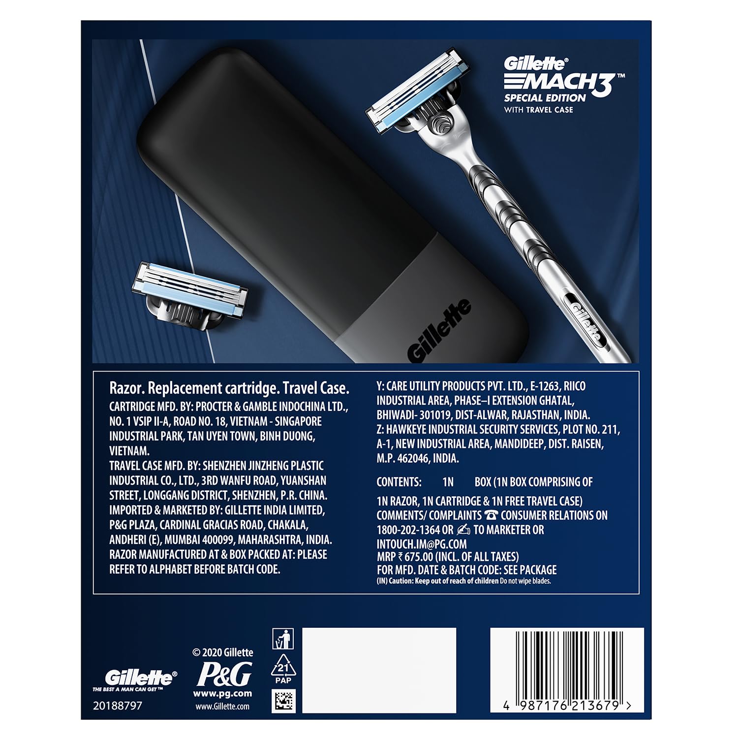 - Quantity - 1 Gillette Mach3 Manual Razor, 1 Gillette Mach3 Cartridge, 1 Travel Case