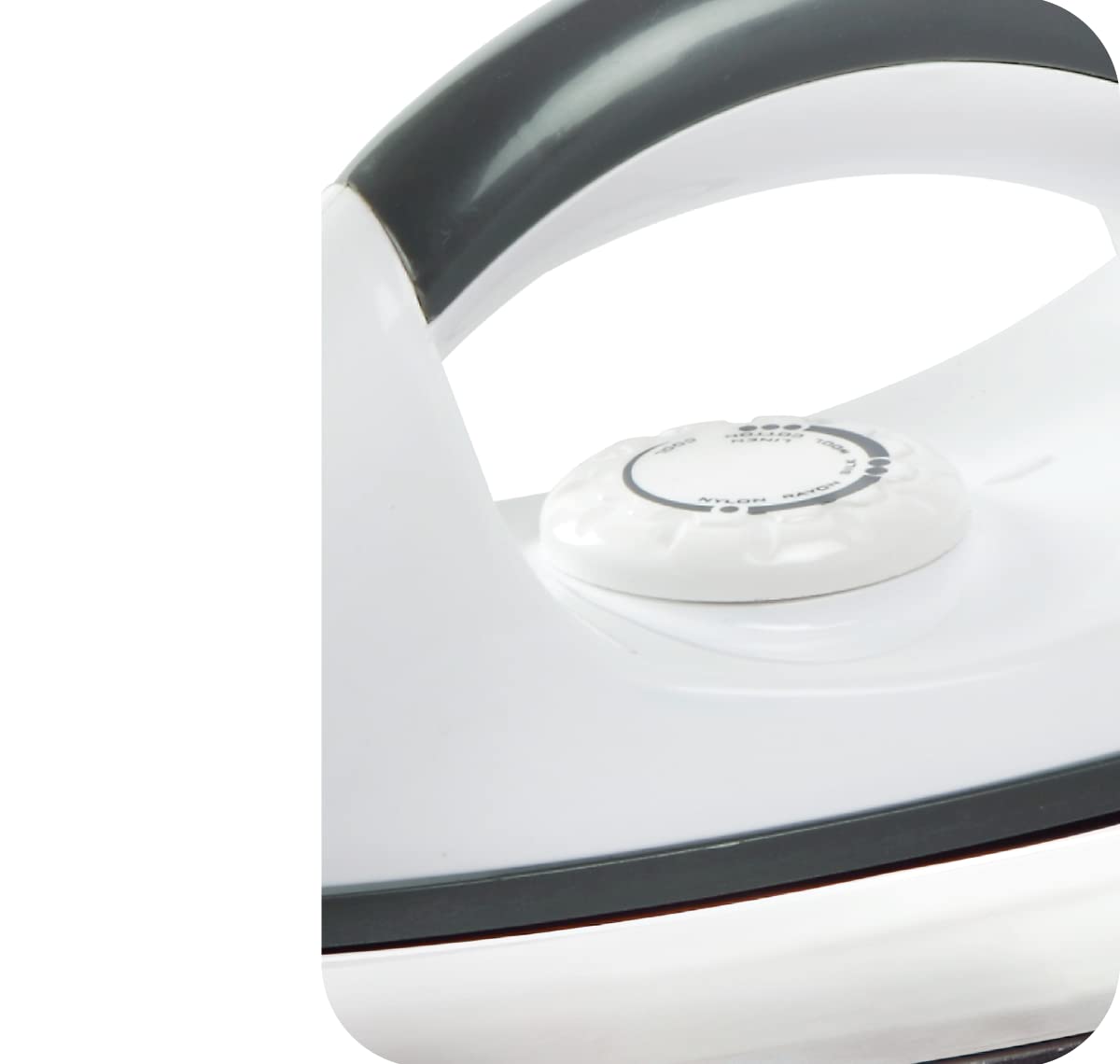 - Easy grip fabric selector knob helps in selecting the desired fabric temperature easily