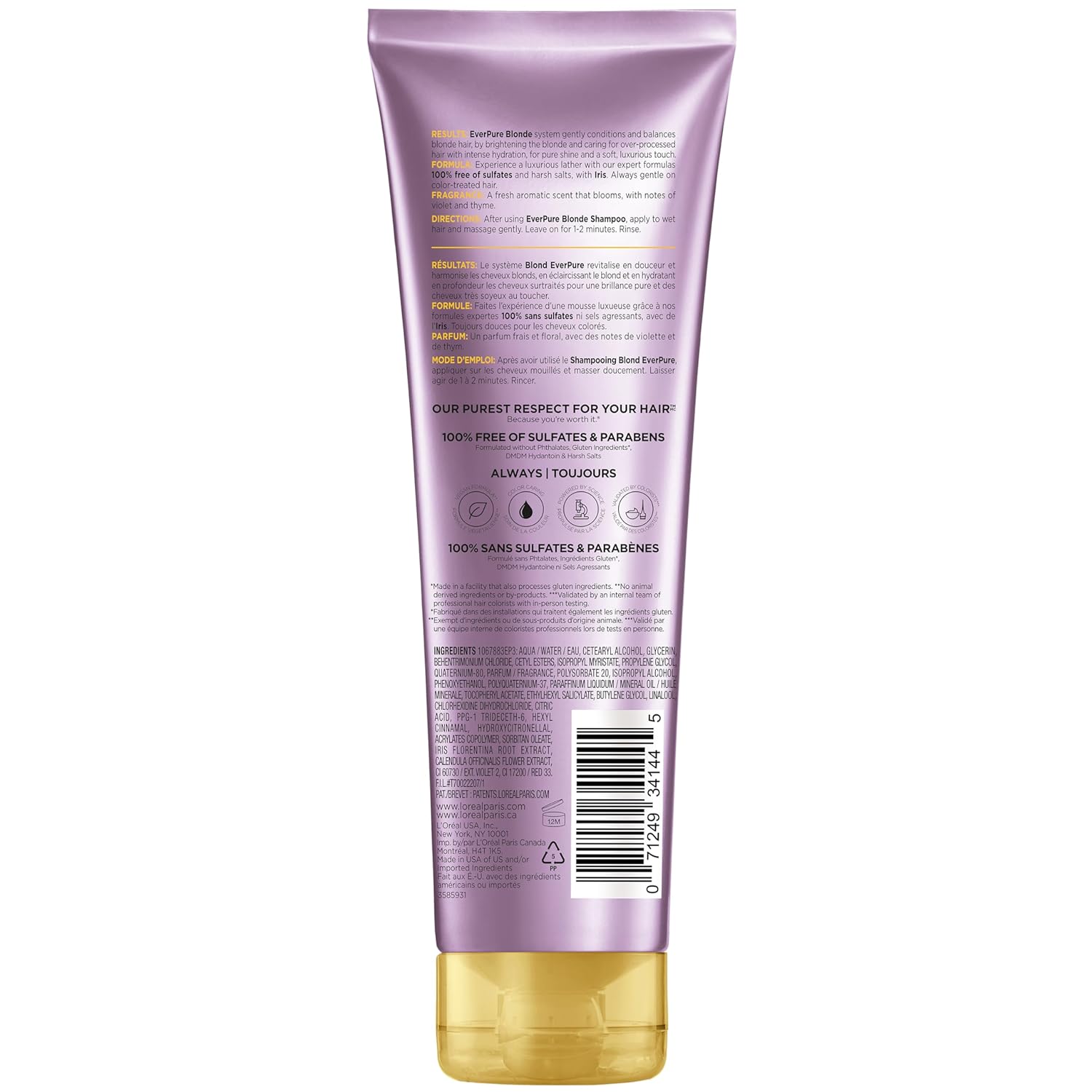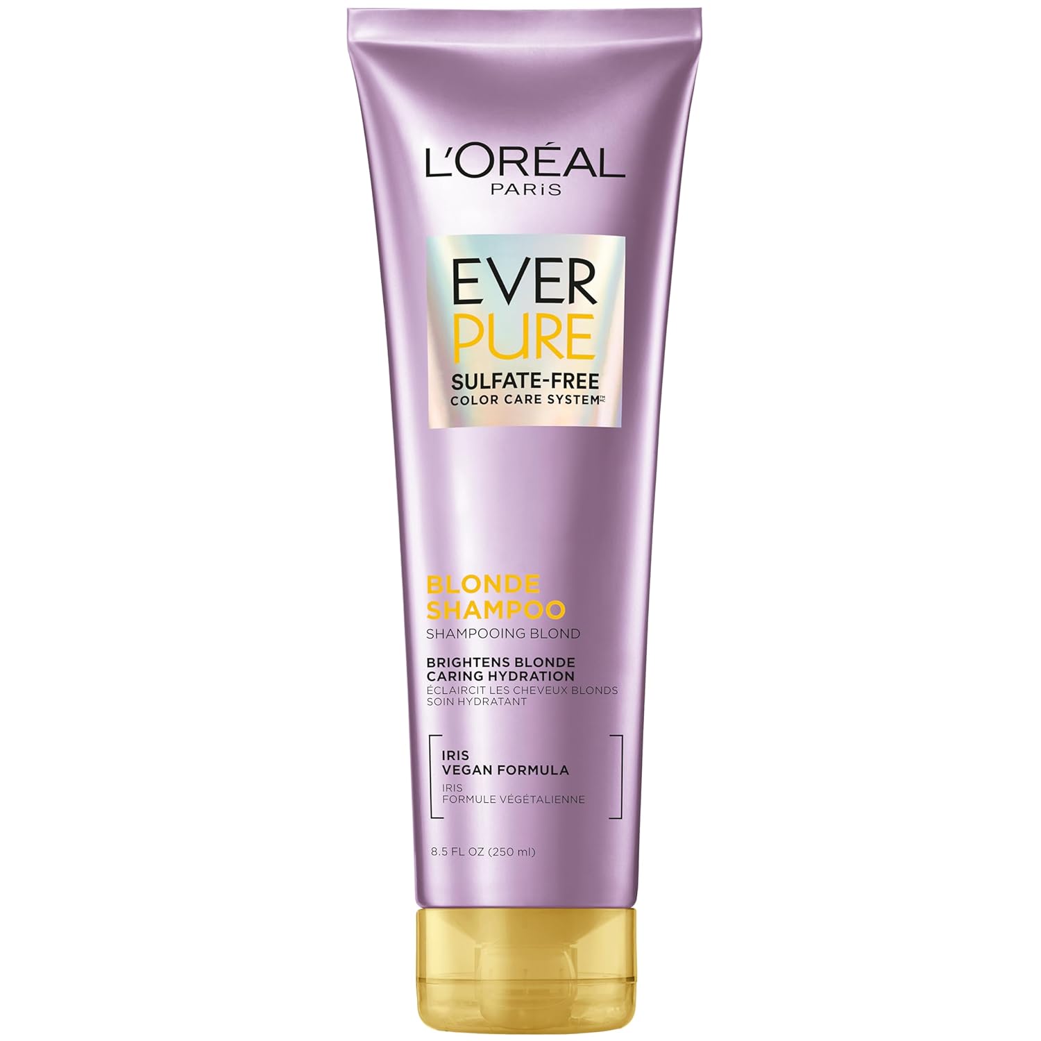 - BrandL’Oréal ParisItem FormLiquidHair TypeAllScentEverPure Color Care BlondeAge Range (Description)AdultMaterial Type FreeSulphate\tFreeProduct BenefitsHydrating,Softening,Shine,Anti FadeLiquid Volume8.5 Fluid OuncesRecommended Uses For ProductHydrating,Color ProtectionNumber of Items250