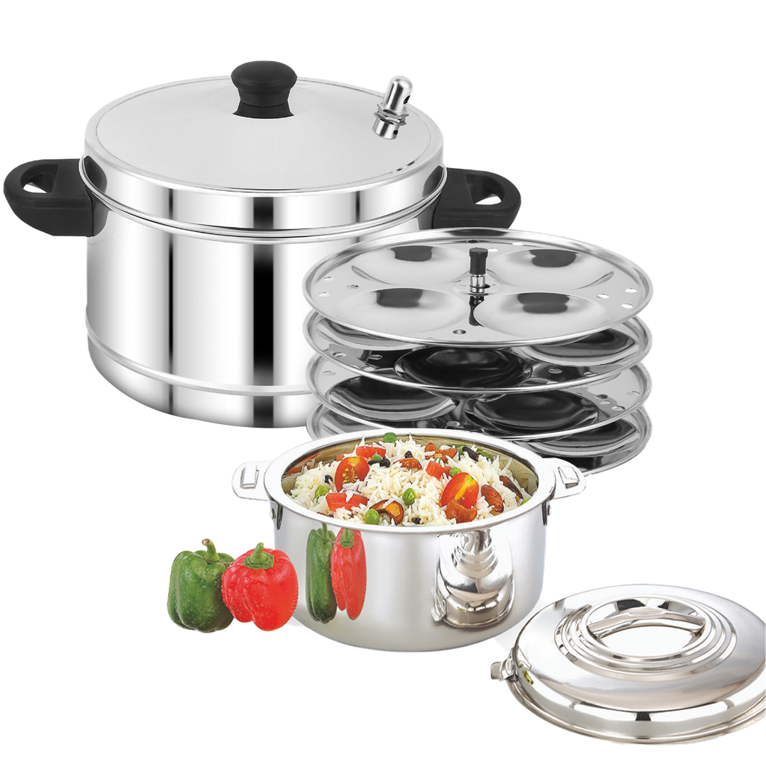 Idli Maker with 4 Plates (16 Idly) & N - Duraa Hot & Cold Stainless Steel Casserole,