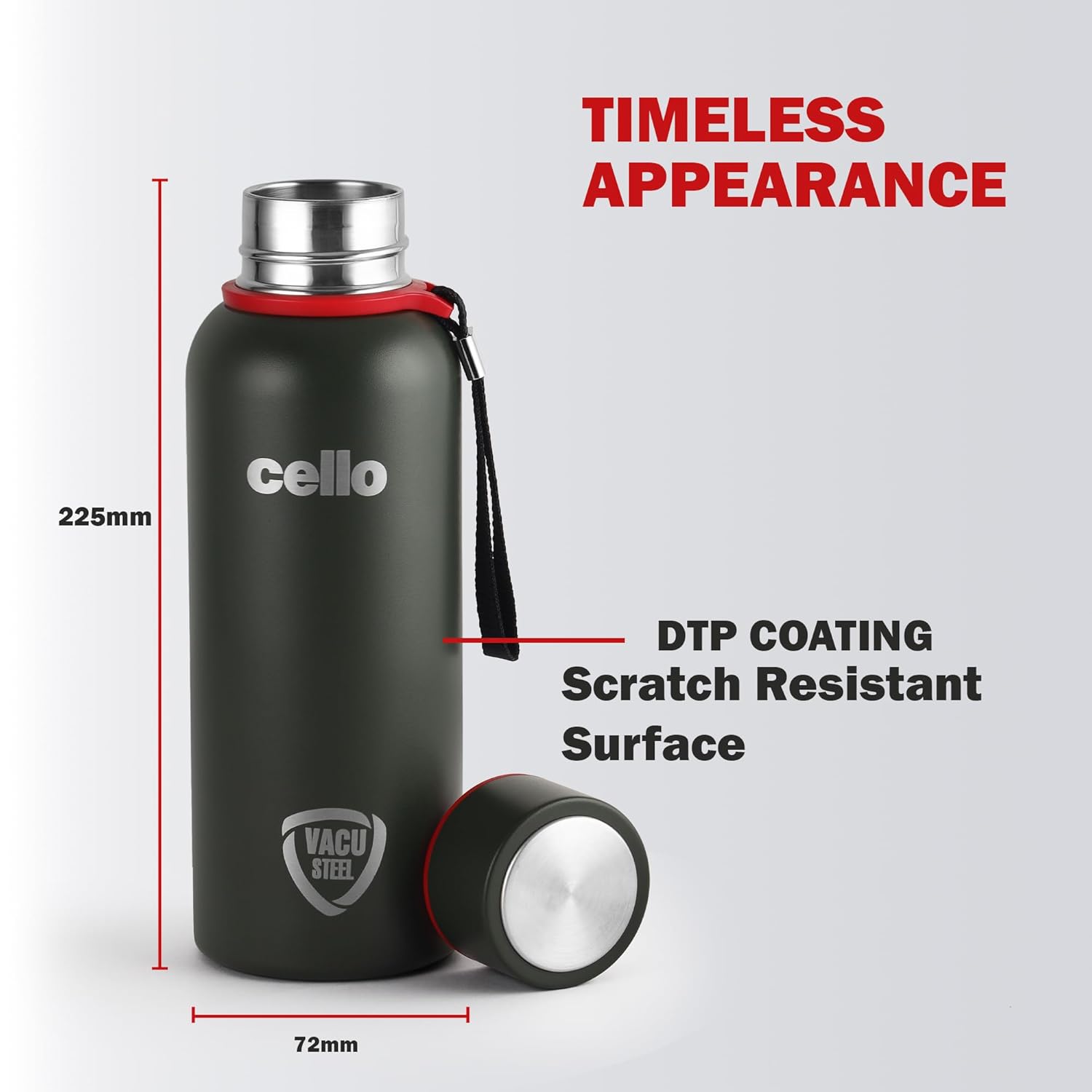 Cello Duro Kent Thermosteel Water Bottle 900ml, Military Green | ISI Certified | 24 Hours Hot & Cold Flask | Double Walled Vacuum Insulated Bottle
