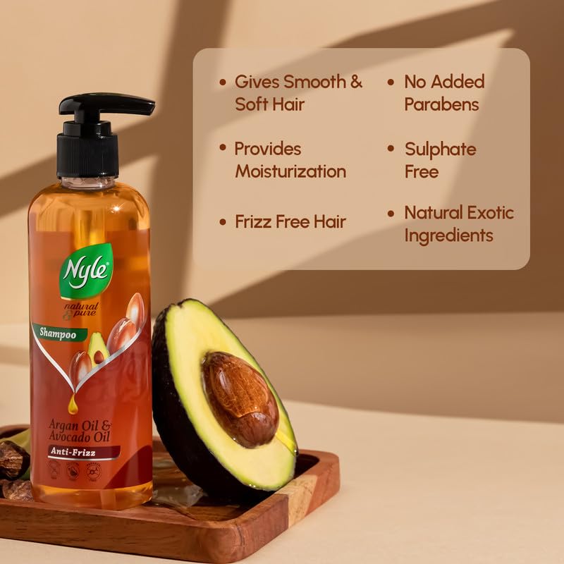 Nyle Natural & Pure Shampoo For Frizz Free Hair, With Goodness Of Argan Oil & Avocado Oil, For Men & Women, No Paraben And No Sulphate, 300ml