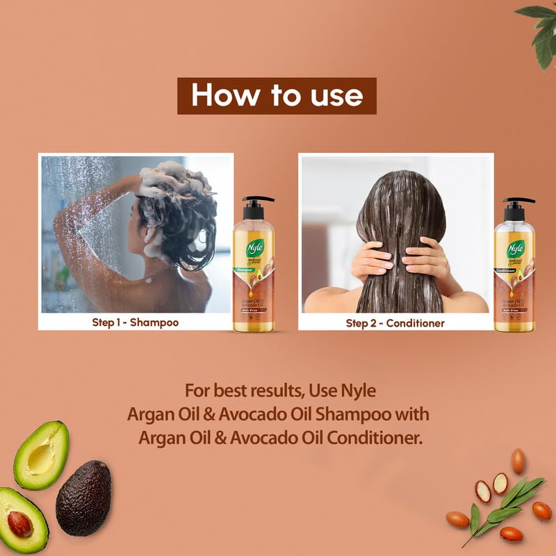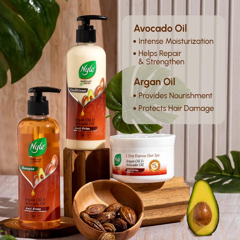 - BrandNyleItem FormLiquidHair TypeAllScentArgan Oil & Avocado OilAge Range (Description)AdultMaterial Type FreeAluminium FreeSpecial FeatureNot Tested On AnimalsProduct BenefitsWinWill beLiquid Volume300 MillilitresRecommended Uses For ProductHair Breakage