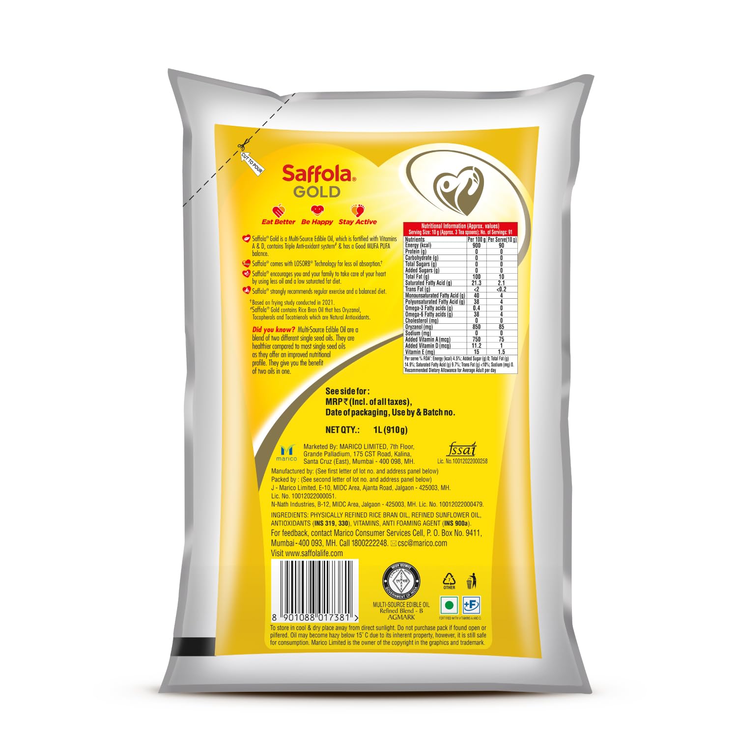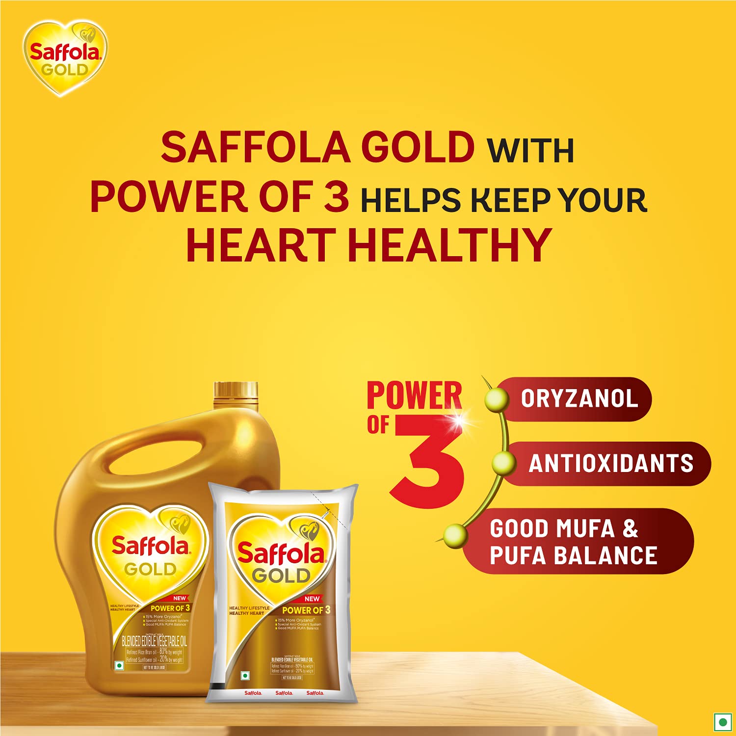 Saffola Gold Refined Cooking oil | Power of 3 (1 Litre Pouch)