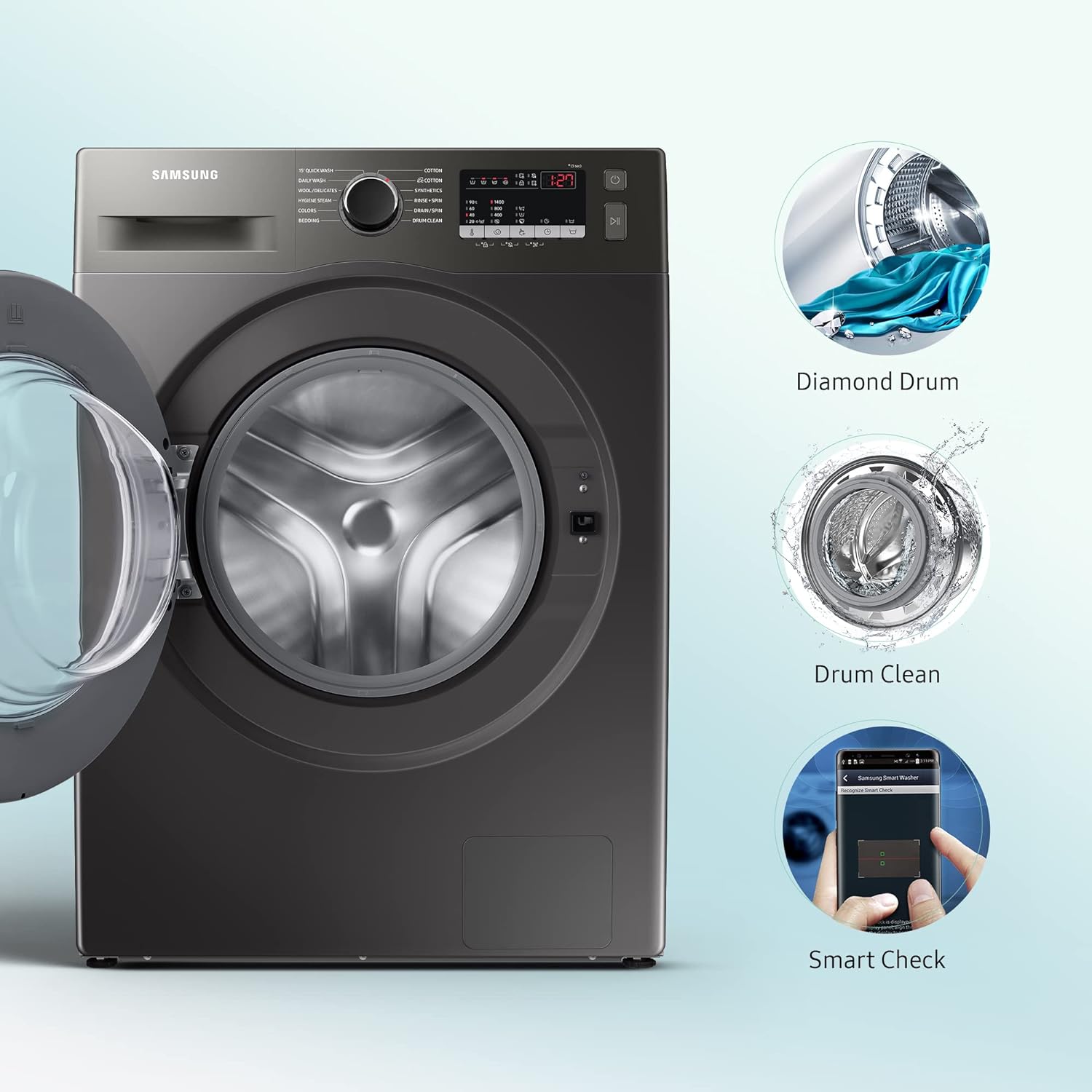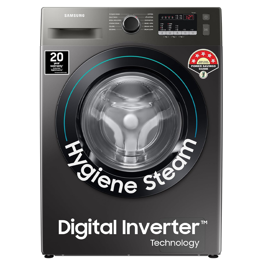 Samsung 9 kg, 5 Star, Digital Inverter Motor, Fully-Automatic Front Load Washing Machine (WW90T4040CX1TL, Hygiene Steam, Inox)