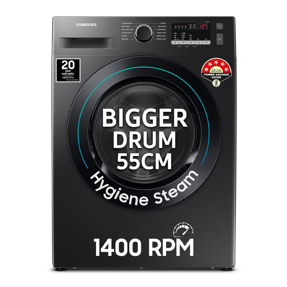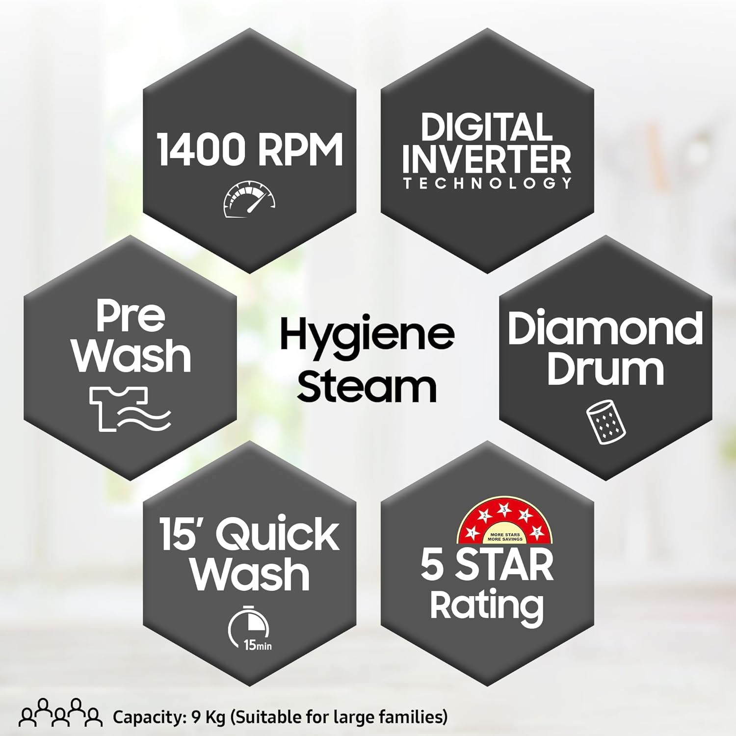 Samsung 9 kg, Hygiene Steam with Inbuilt Heater, Digital Inverter, Fully-Automatic Front Load Washing Machine,