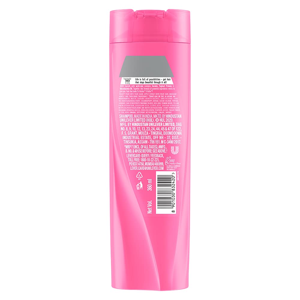 Sunsilk Lusciously Thick & Long, Shampoo, 360ml, for Fuller Hair, with Keratin, Yoghurt Protein & Macademia Oil, Paraben-Free