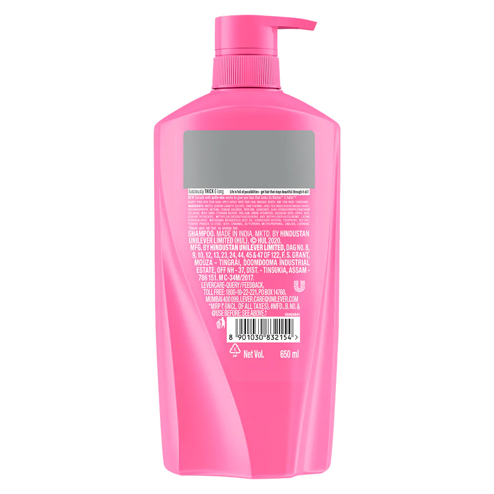 Sunsilk Lusciously Thick & Long Shampoo 650 ml, With Keratin, Yoghut Protein and Macadamia Oil - Thickening Shampoo for Fuller Hair