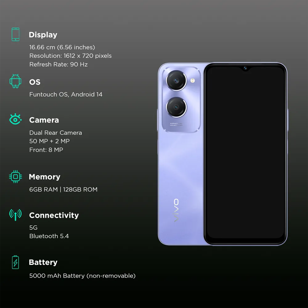 Vivo Y28s 5G (6GB RAM, 128GB, Twinkling Purple)