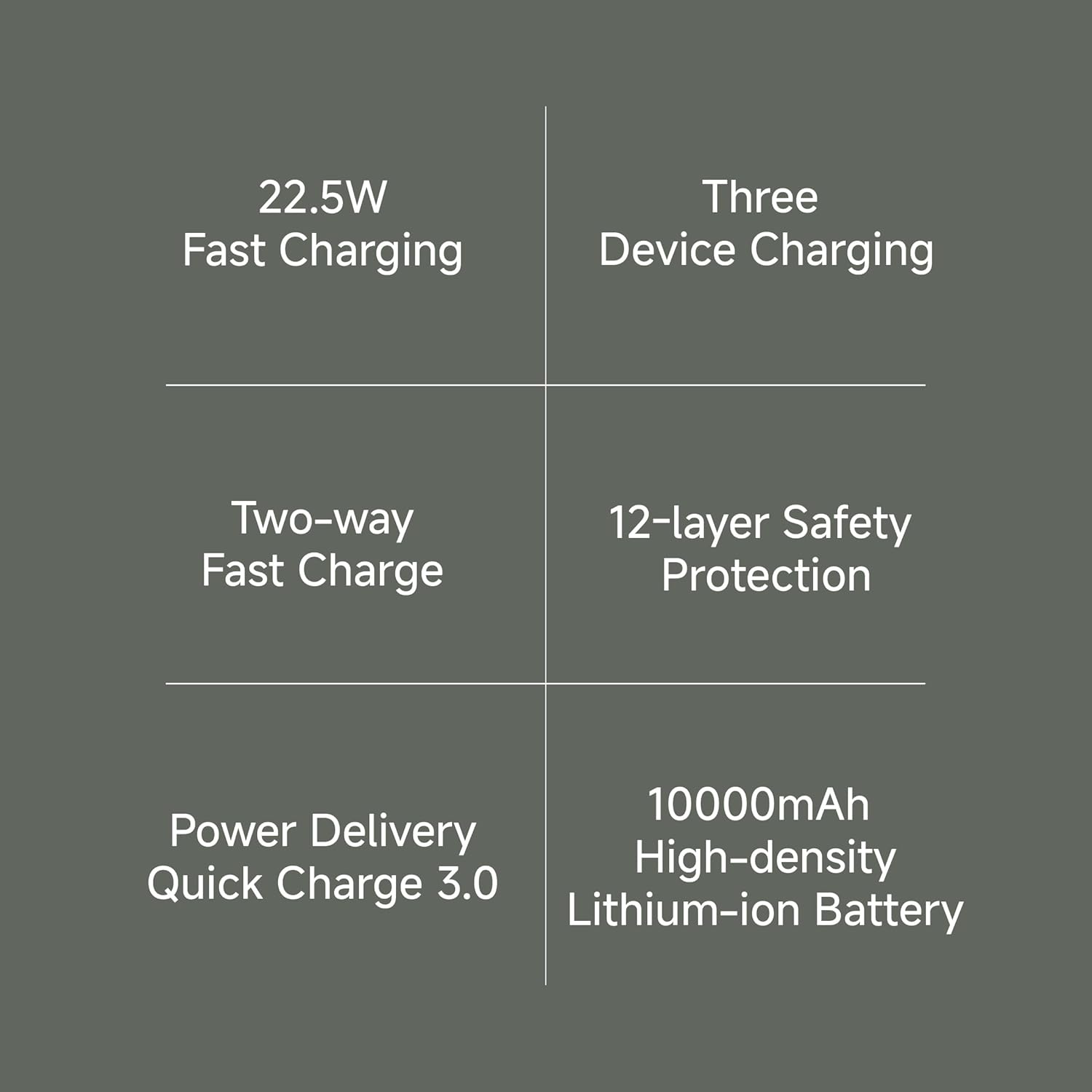 - Connector TypeUSB Type C, USB Type ABrandXiaomiBattery Capacity10000 Milliamp HoursColourOlive GreenSpecial FeatureTriple Port Charging, 22.5W Fast Charging, Short Circuit Protection, Compatible with All Smartphones