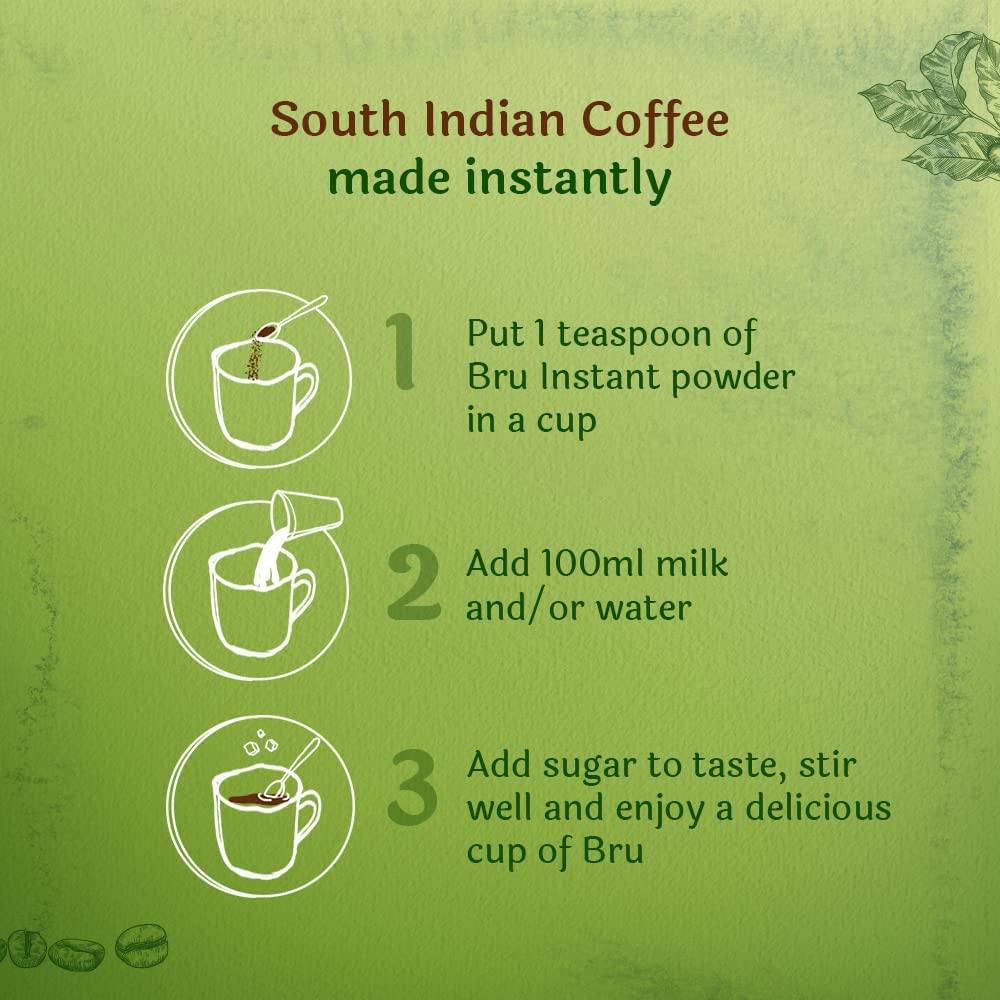 - Real Taste of South Indian Coffee : Bru Instant is made with choicest coffee beans from South Indian plantations