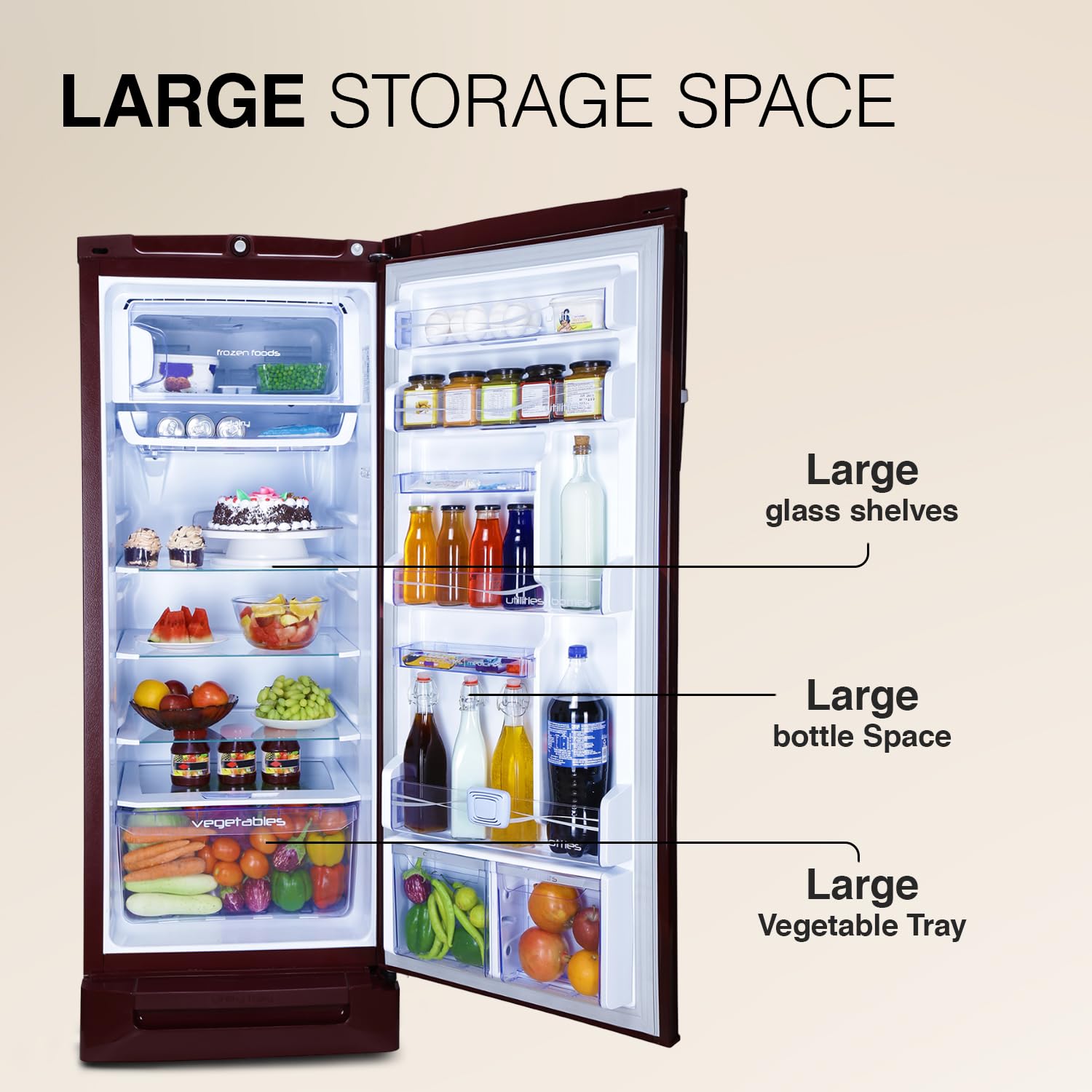 - Additional Features: 2.25 L Bottle shelf space | low staring voltage | toughened glass shelves | 100% environment friendly