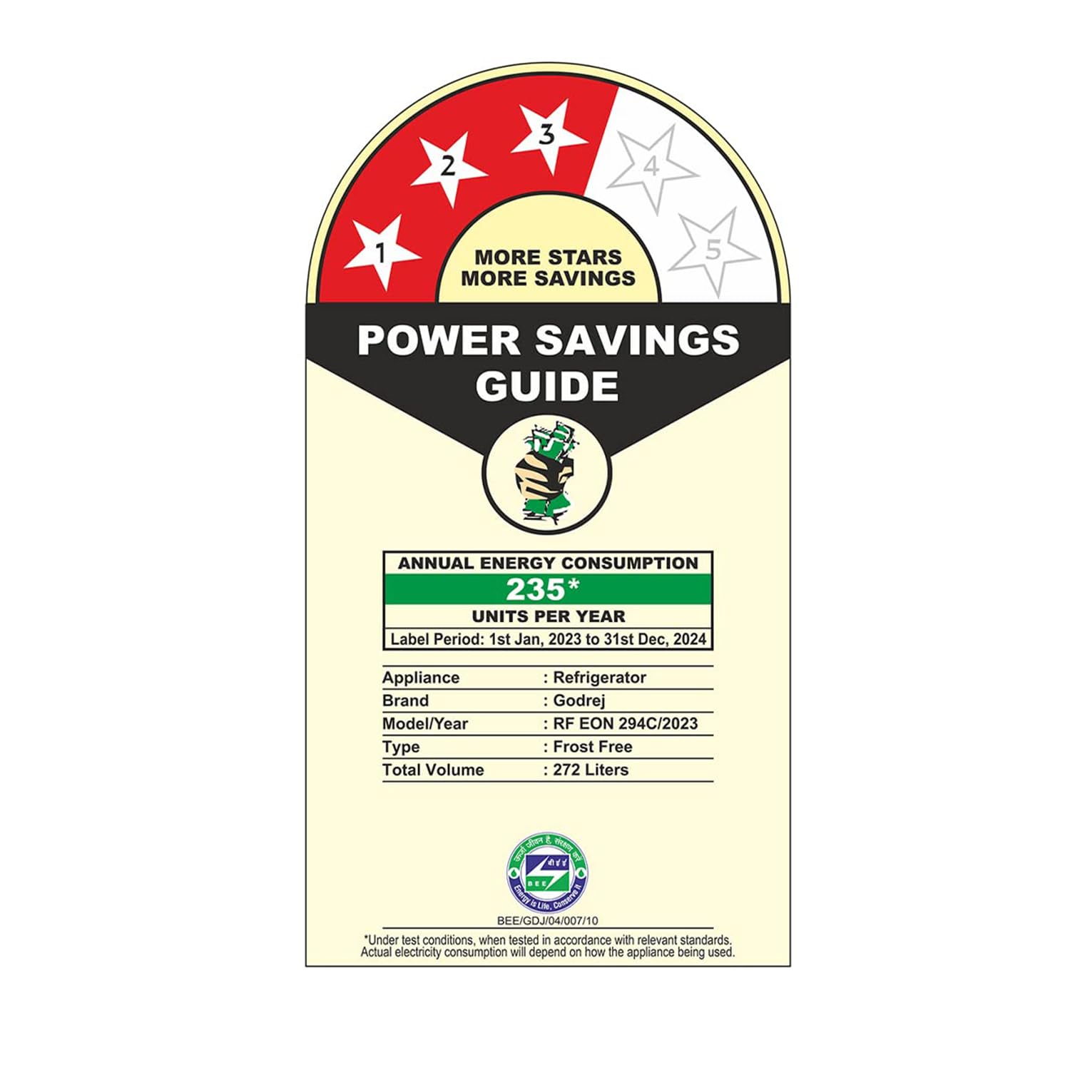 Godrej 272 L 3 Star Convertible Technology, 30 days Farms Freshness Inverter Frost Free Double Door Refrigerator(2023 Model, RF EON 294C RCIT FS ST, Fossil Steel)