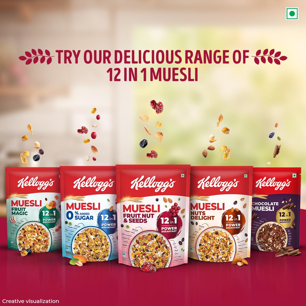 - India’s No.1* Muesli: Kellogg’s Muesli is India’s No. 1 Muesli brand (*refer pack/website for details)