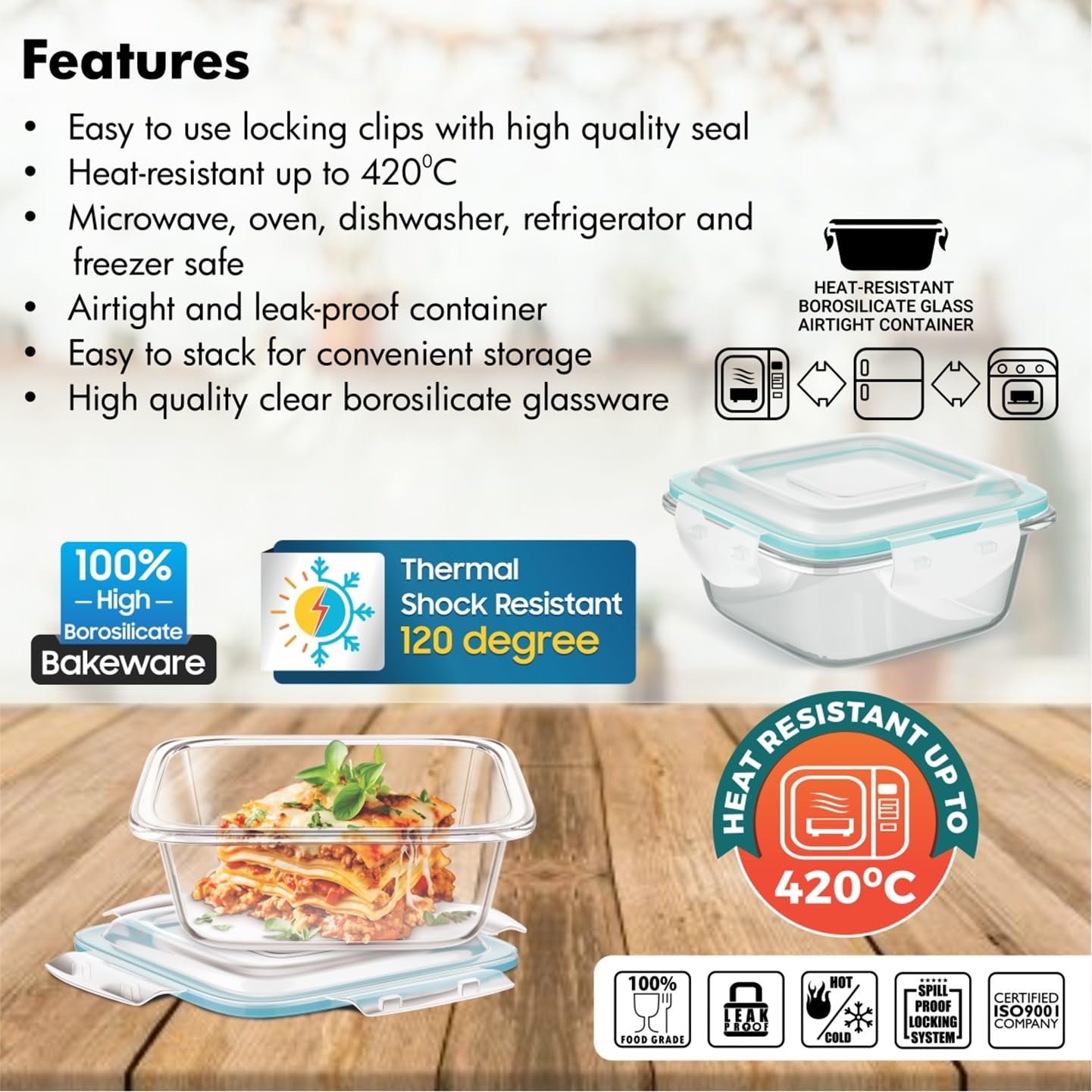 - Feature Details: The Signoraware glass container is Easy to use locking clips with high quality seal keeps the food fresh for longer, Easily Stackable for convenient storage & this container is also Microwave and Refrigerator safe.