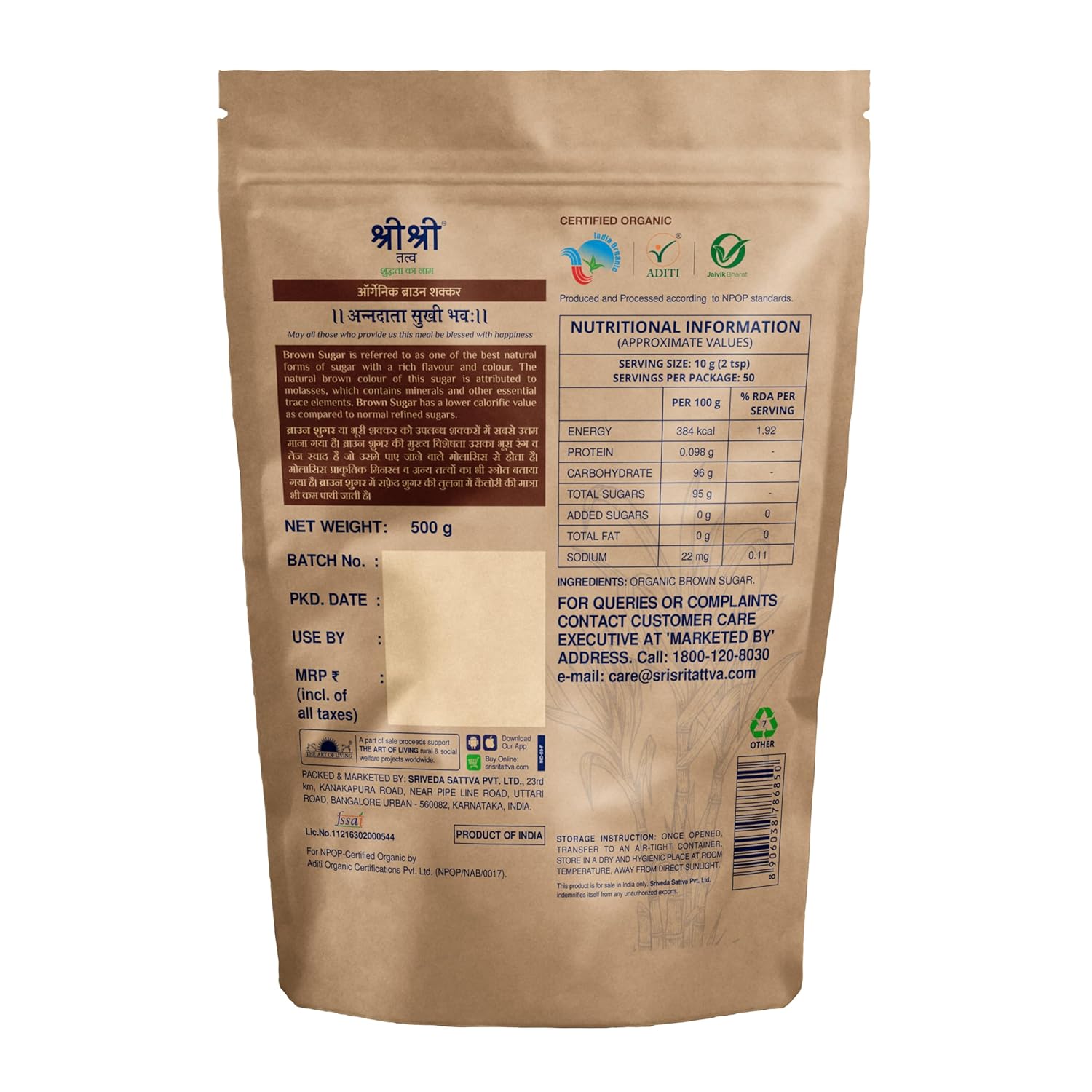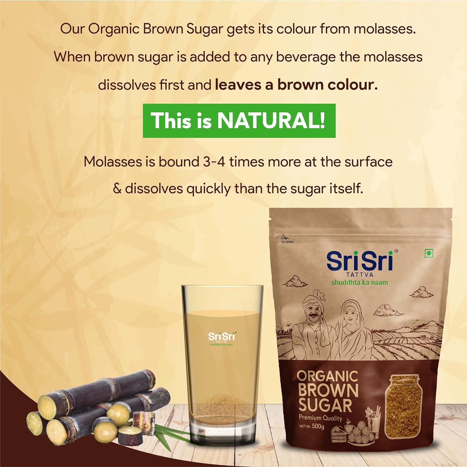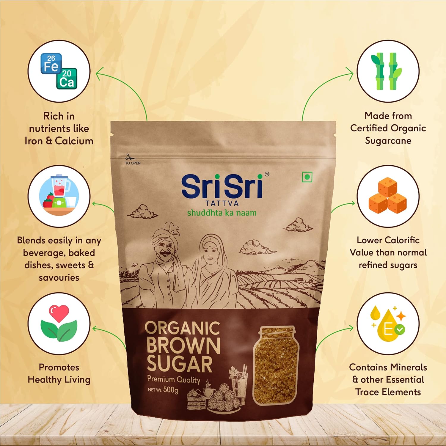 - With Sri Sri Tattva's Organic Brown Sugar, you may savor the natural sweetness of nature, a delicious addition to your kitchen that will take your culinary masterpieces to new heights. Our organic brown sugar, offered in compact 1 kg & 500 g packs, illustrates our dedication to supplying you with high-quality organic goods.